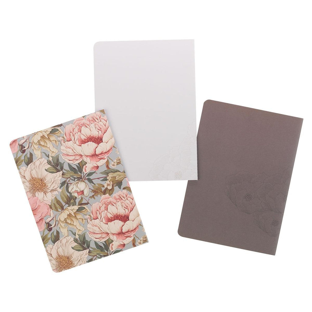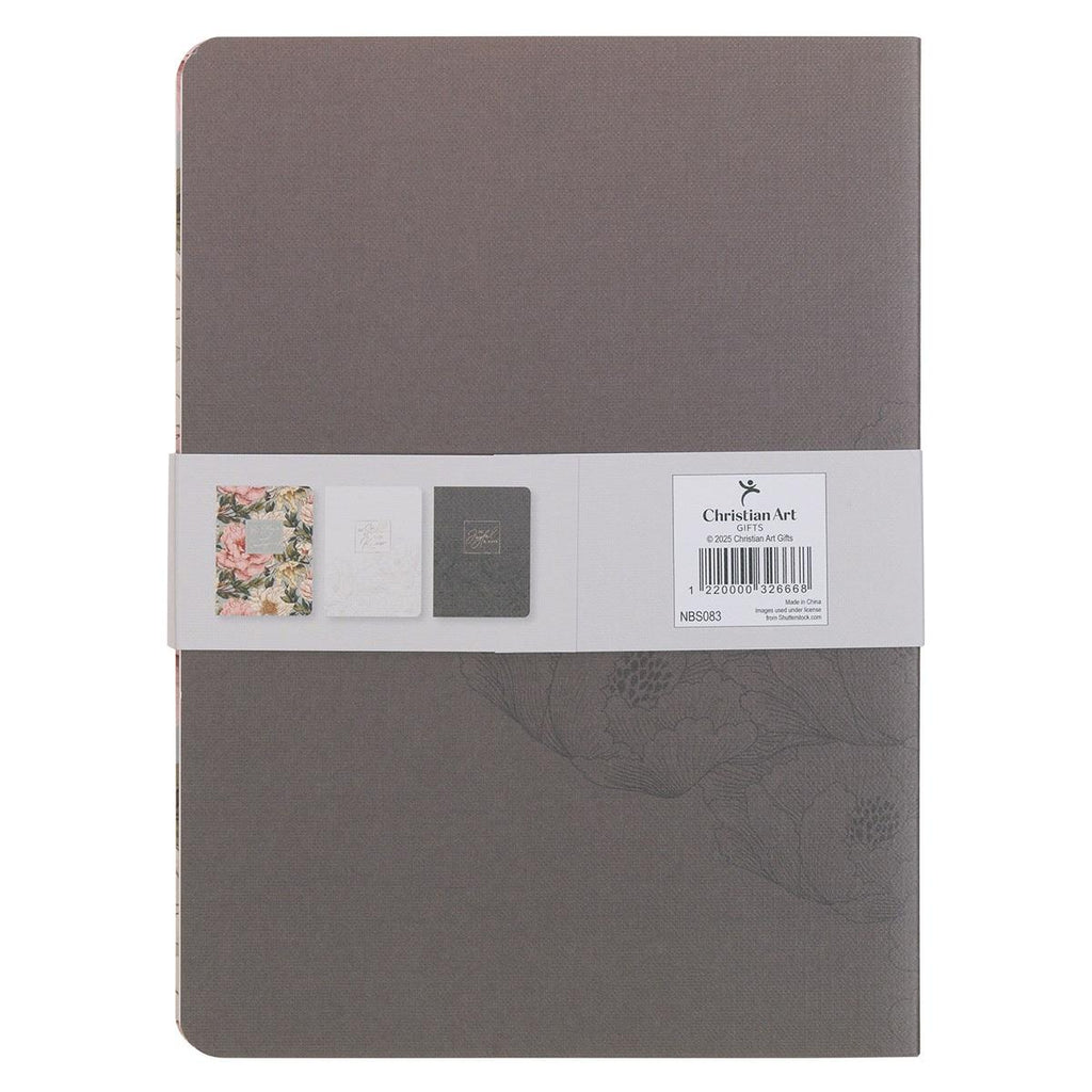 Each notebook in the set features a unique Scripture-inspired design and floral theme in muted colors.