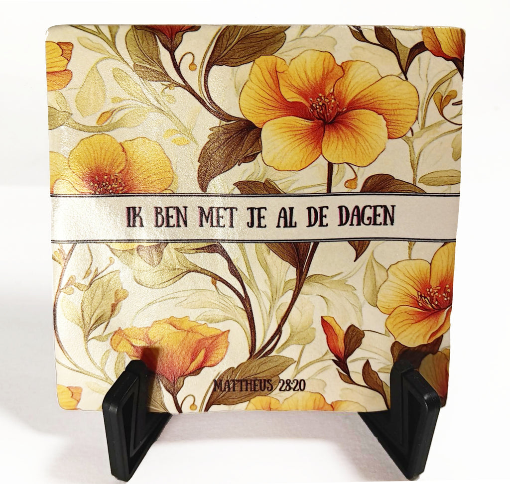 De bijgeleverde houder is een perfecte aanvulling, vervaardigd van hoogwaardig PP en bamboe, voor een stijlvolle presentatie. Dit tegeltje is ideaal als decoratief element in de keuken, woonkamer of zelfs als persoonlijk cadeau.