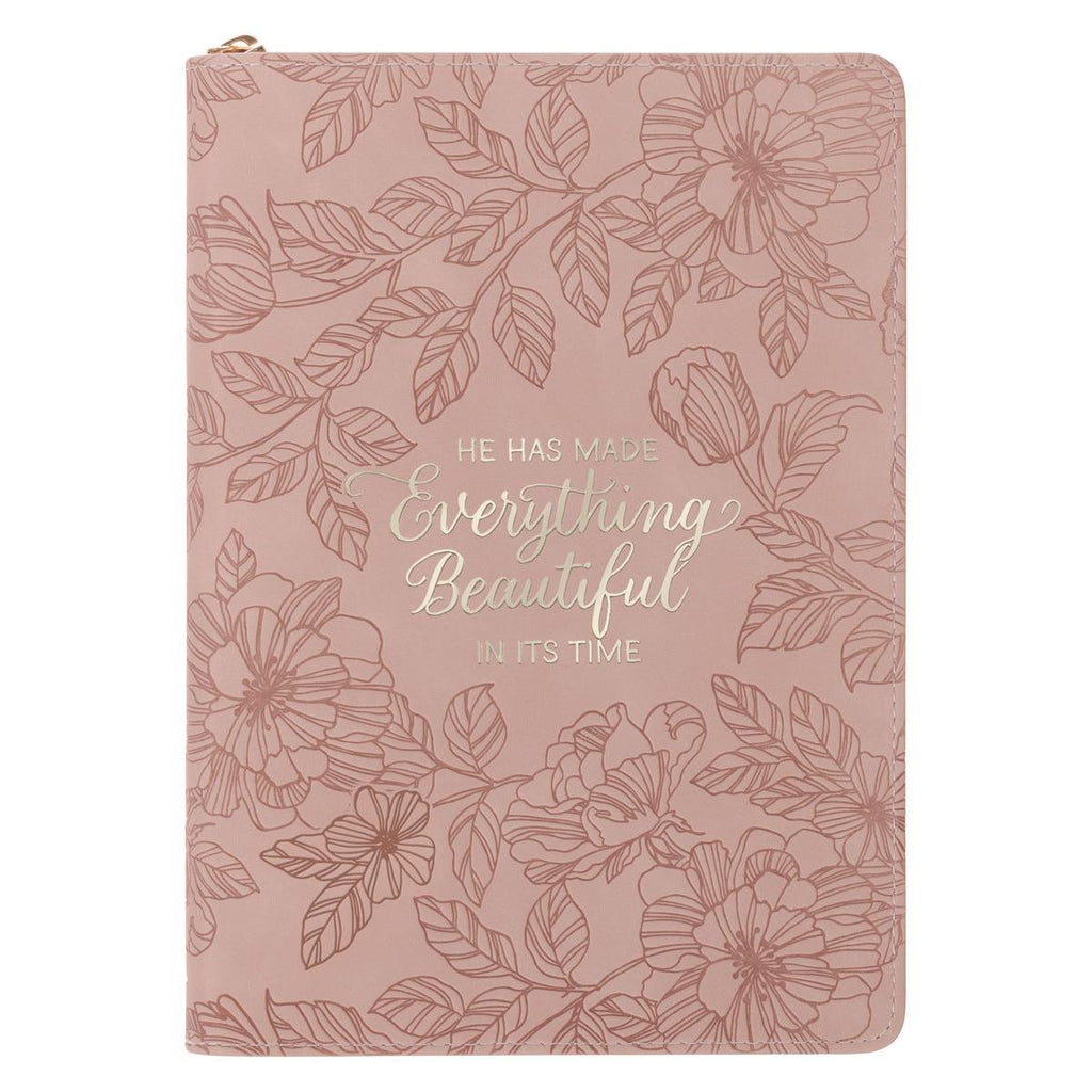Perfect as a gift for a Sunday School teacher, a coworker, or a dear sister in Christ, this journal is a great companion for documenting thoughts, worries, and hopes. The Everything Beautiful Blush Floral Faux Leather Journal with Zipper Closure will motivate you to write with the knowledge that you are part of God's beautiful plan.