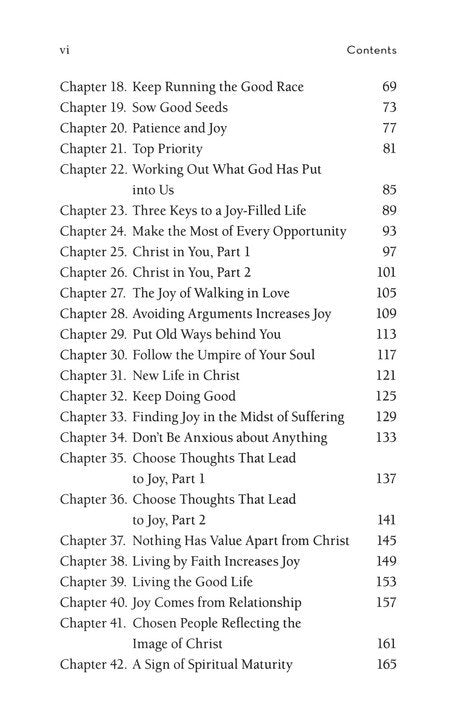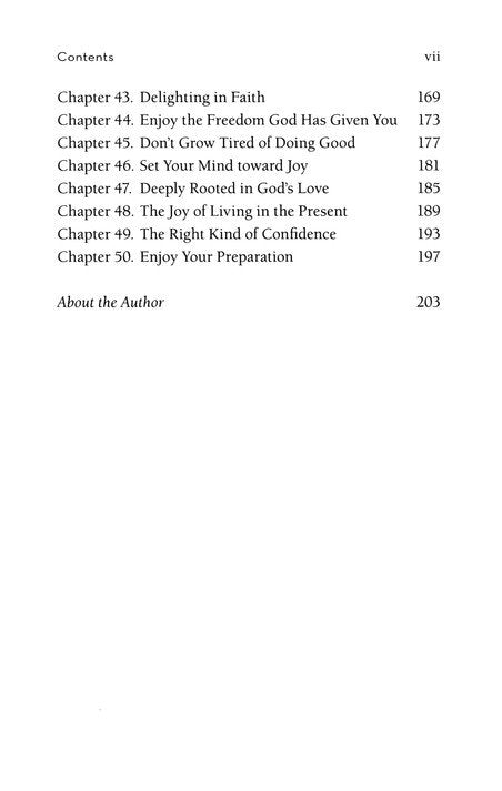 In dit unieke boek presenteert Joyce Meyer Paulus' leringen over vreugde in beknopte lessen die je toerusten om de grootste uitdagingen op weg naar een vreugdevol leven te overwinnen. Door middel van deze 50 dagelijkse notities word je aangemoedigd om de waarheden die God je heeft gegeven te omarmen, waarheden die je in staat stellen de emoties, houdingen en ervaringen te overwinnen die je van vreugde beroven. Wees vreugdevol. Ga op reis en begin het prachtige, overvloedige leven te ervaren dat de Heer voor u in petto heeft!