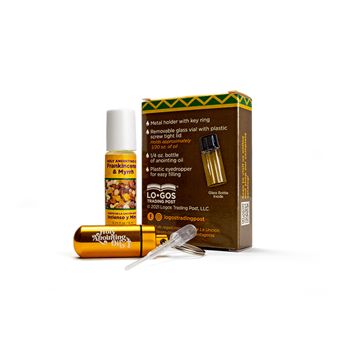 This religious anointing oil & accessory kit is the perfect solution to taking your anointing oil with you wherever you go. This oil & bottle starter set comes with 1 2ml fl oz bottle of scented oil, a 1 2 dram glass vial housed in a sturdy metal keychain container with a screw-top lid for easy access, as well as a fine-tipped dispenser dropper for perfect and easy proportioning and distribution. The keyring attached to the lid of the keychain makes it easy to add this vial holder to any set of keys, keyrings, keychains, lanyards, or zippers. Always be prepared to do the Lord's work with this convenient anointing oil and accessory kit. Use these gift boxes as handouts at church and mass or pass them out as gifts at small groups and Bible studies!